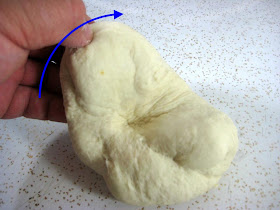 The next three pictures illustrate how I hand knead dough.