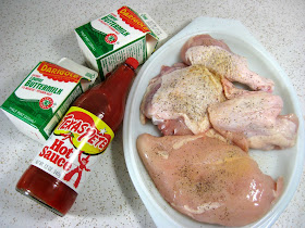 Hot sauce, eggs and chicken.